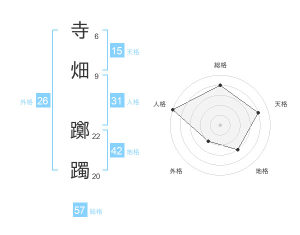 寺畑 躑躅さんの総格は57画の4点!