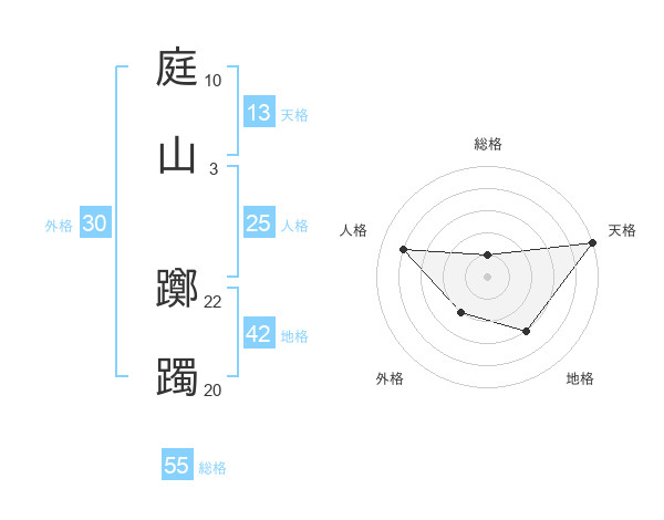 庭山 躑躅さんの天格は13画の5点!