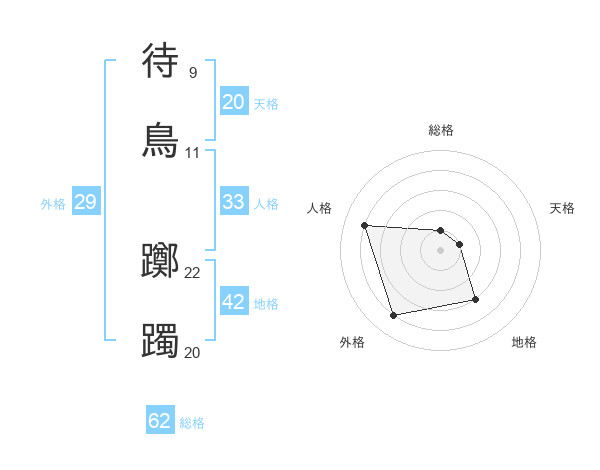 待鳥 躑躅さんの総格は62画の1点!