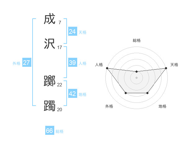 成沢 躑躅さんの天格は24画の5点