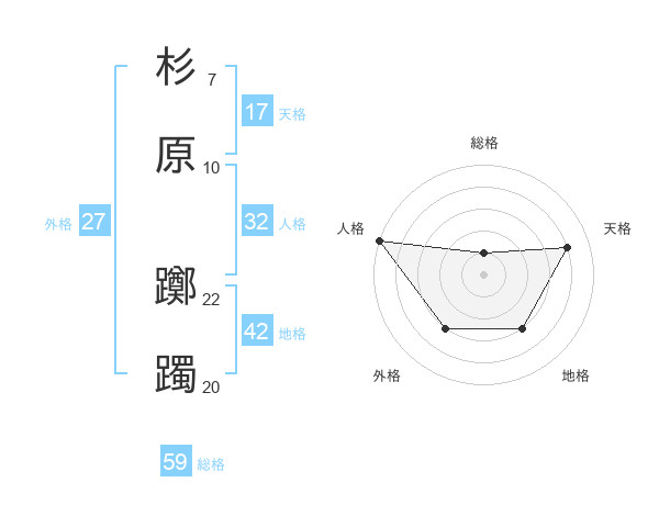 杉原 躑躅さんを姓名の画数から五運を鑑定