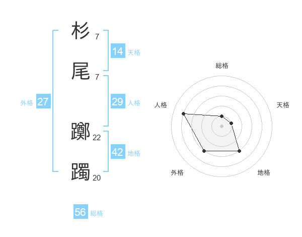 杉尾 躑躅さんを姓名の画数から五運を鑑定
