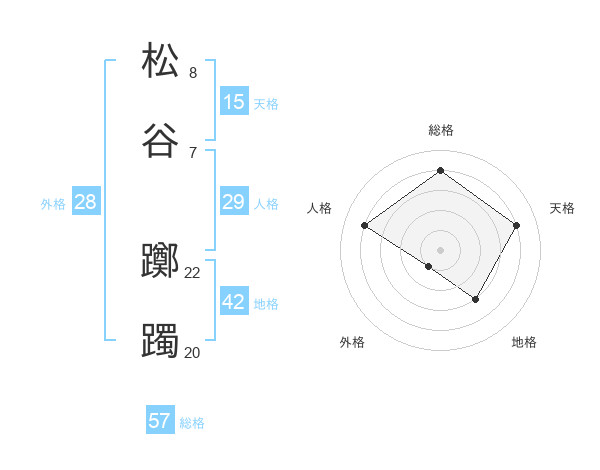 松谷 躑躅さんの外格は28画の1点