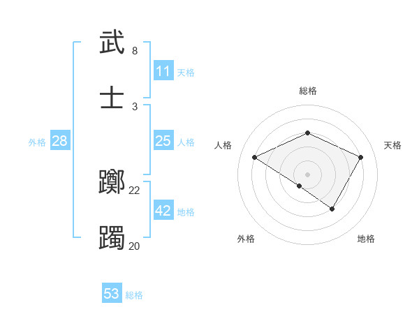 武士 躑躅さんを姓名の画数から五運を鑑定