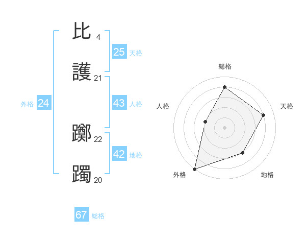 比護 躑躅さんの総格は67画の4点!