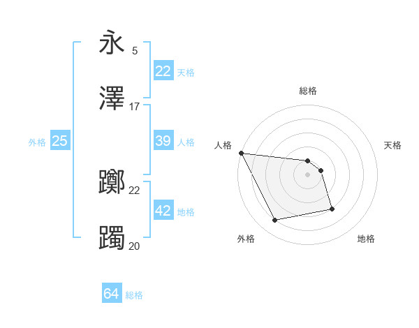永澤 躑躅さんの天格は22画の1点!
