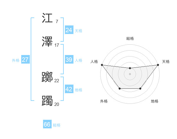 江澤 躑躅さんを姓名の画数から五運を鑑定