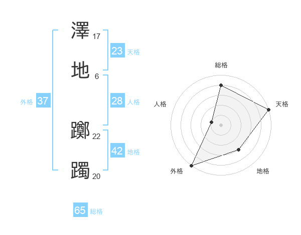 澤地 躑躅さんを姓名の画数から五運を鑑定