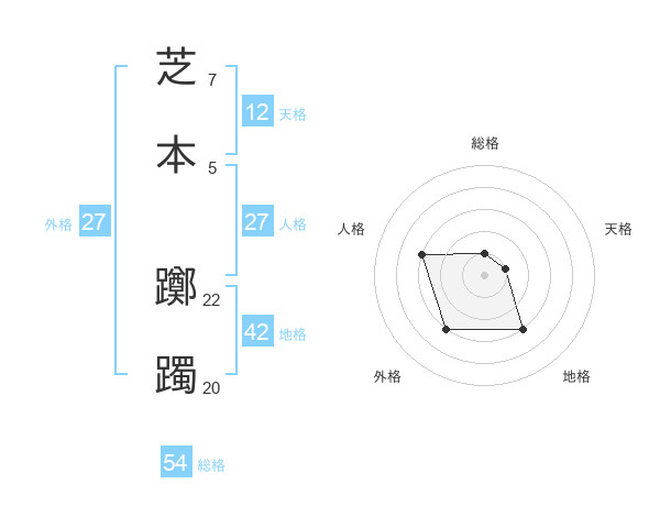 芝本 躑躅さんを姓名の画数から五運を鑑定