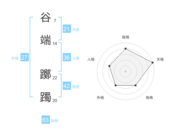 谷端 躑躅さんの総格は63画の4点!