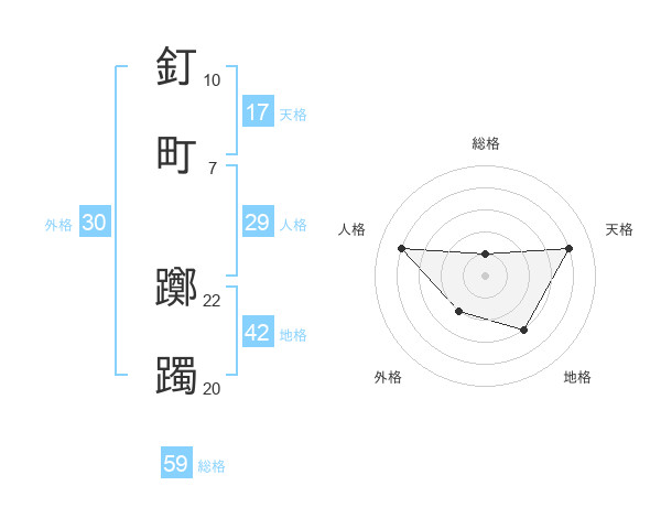 釘町 躑躅さんを姓名の画数から五運を鑑定