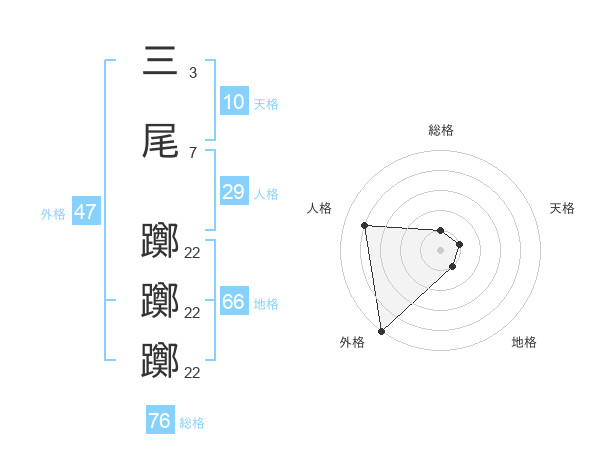 三尾 躑躑躑さんを姓名の画数から五運を鑑定