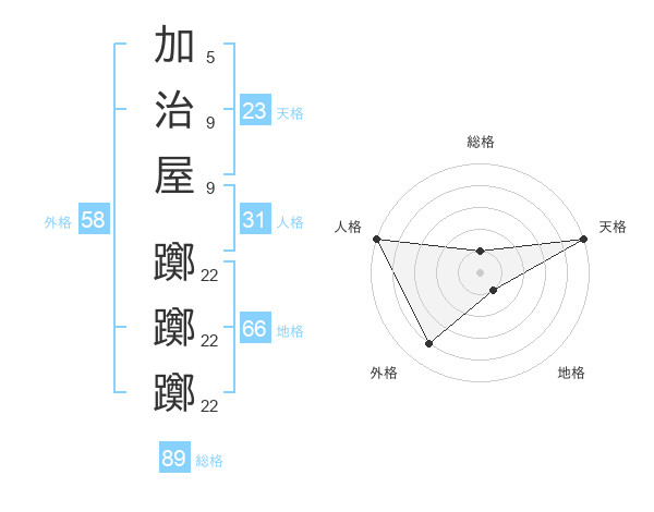 加治屋 躑躑躑さんの外格は58画の4点!