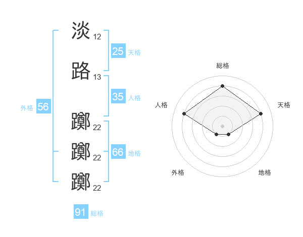淡路 躑躑躑さんを姓名の画数から五運を鑑定