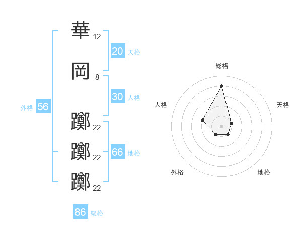 華岡 躑躑躑さんの総格は86画の4点!