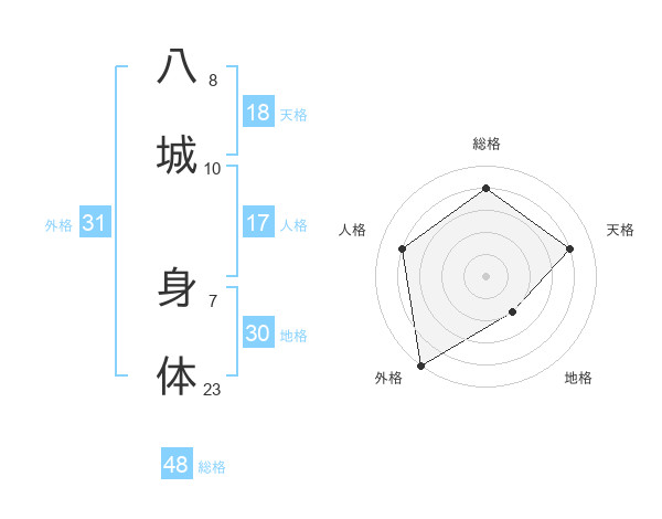 八城 身体さんの天格は18画の4点!