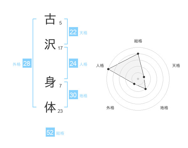 古沢 身体さんの人格は24画の5点!