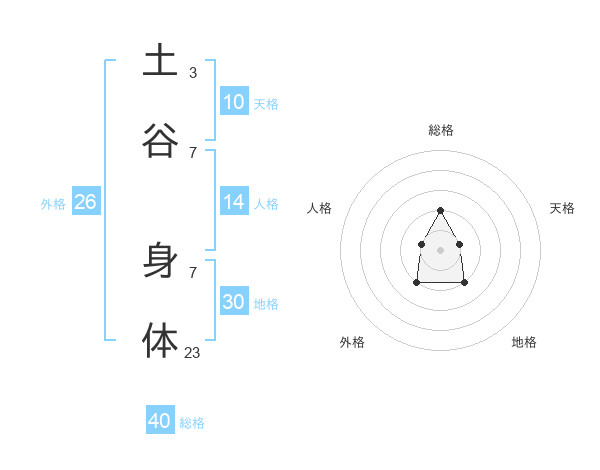 土谷 身体さんの総格は40画の2点!