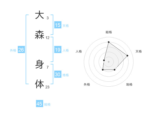 大森 身体さんの総格は45画の4点!