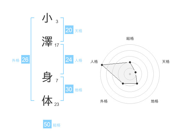 小澤 身体さんの総格は50画の2点!