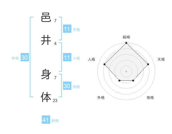 邑井 身体さんの総格は41画の5点!
