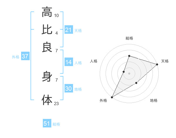 高比良 身体さんの総格は51画の3点!