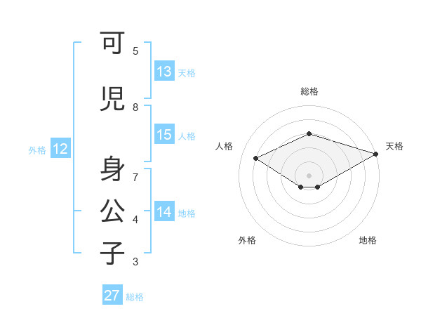 可児 身公子さんの総格は27画の3点!