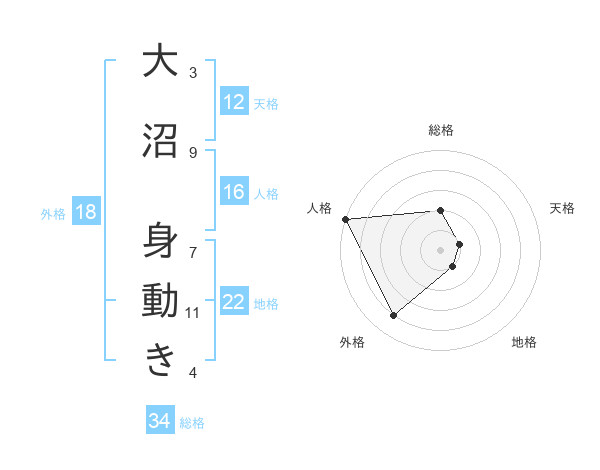 大沼 身動きさんを姓名の画数から五運を鑑定