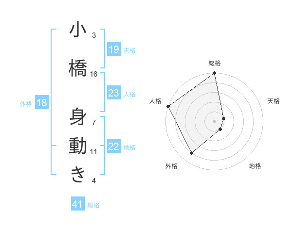 小橋 身動きさんを姓名の画数から五運を鑑定