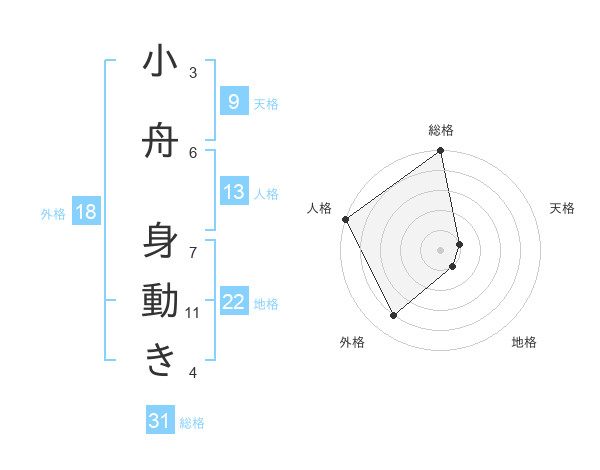 小舟 身動きさんを姓名の画数から五運を鑑定