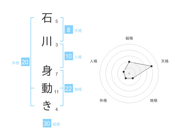 石川 身動きさんの総格は30画の2点