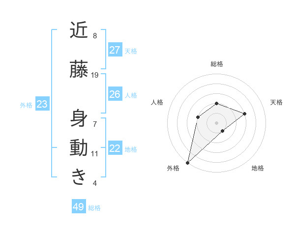 近藤 身動きさんを姓名の画数から五運を鑑定