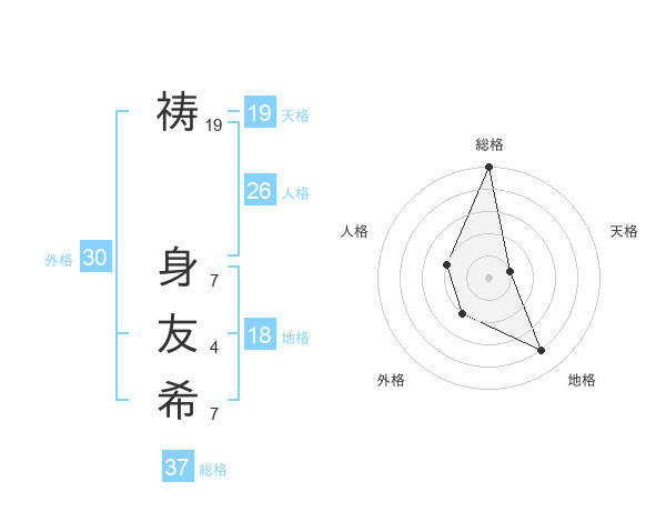 祷 身友希さんの総格は37画の5点!
