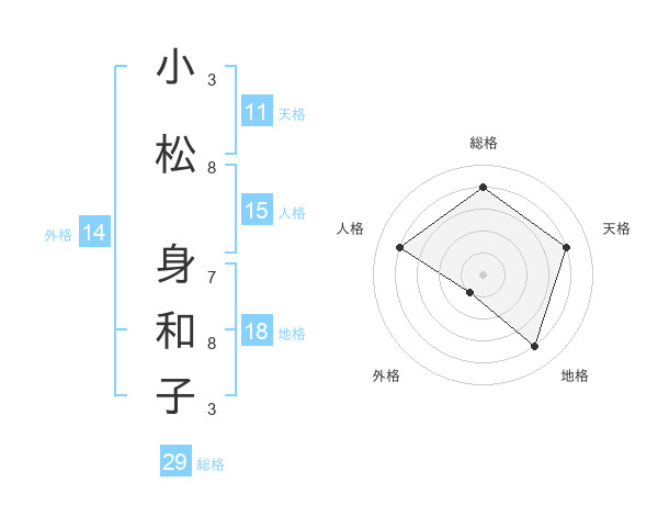 小松 身和子さんの総格は29画の4点!