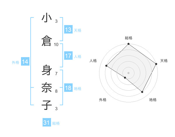小倉 身奈子さんの天格は13画の5点!