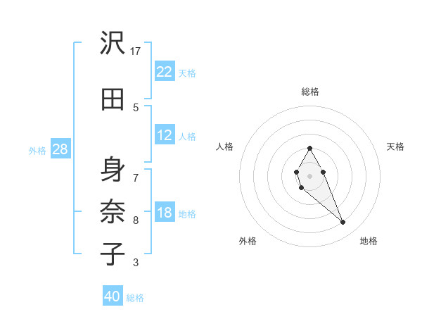 沢田 身奈子さんの天格は22画の1点!
