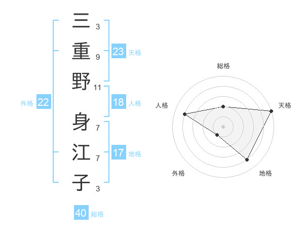 三重野 身江子さんの天格は23画の5点!