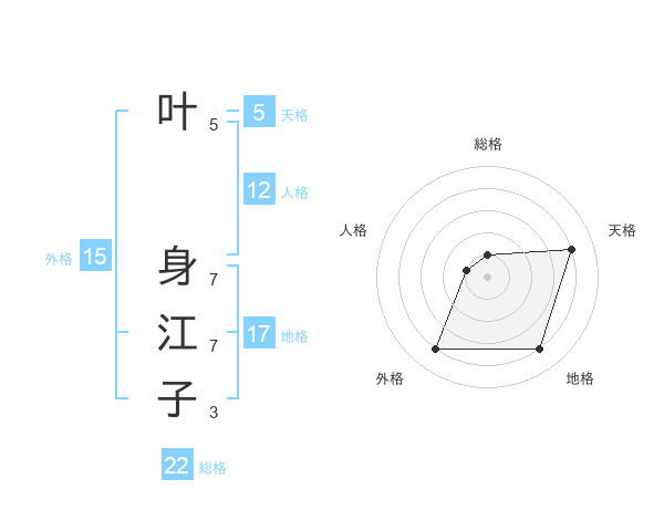 叶 身江子さんの天格は5画の4点!
