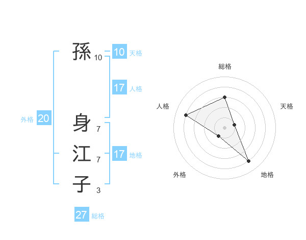 孫 身江子さんの総格は27画の3点!