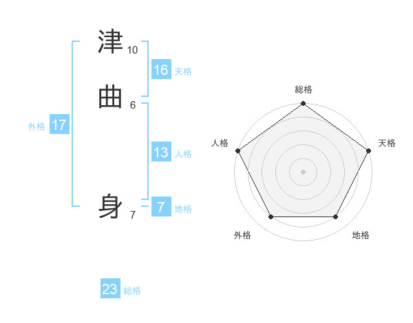 津曲 身さんの総格は23画の5点!