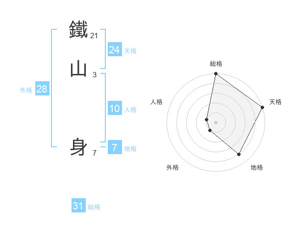 鐵山 身さんの総格は31画の5点!