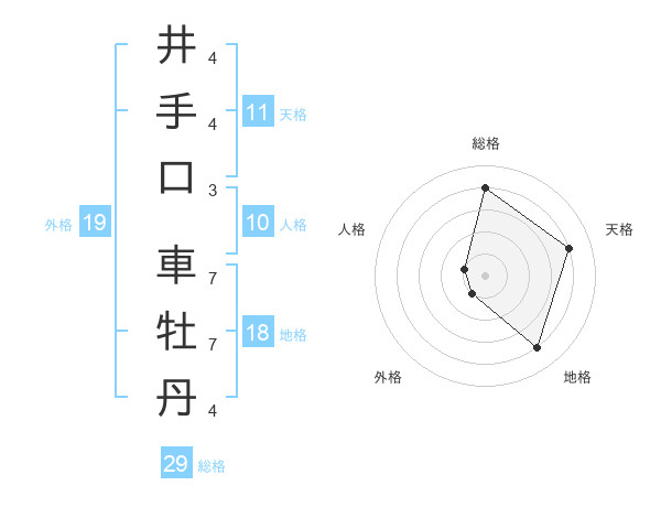 井手口 車牡丹さんを姓名の画数から五運を鑑定