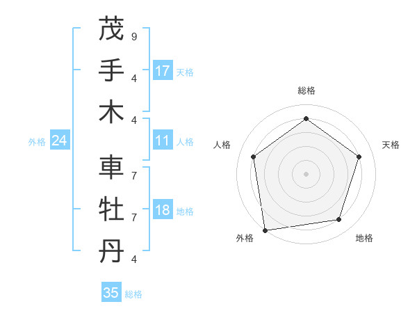 茂手木 車牡丹さんを姓名の画数から五運を鑑定