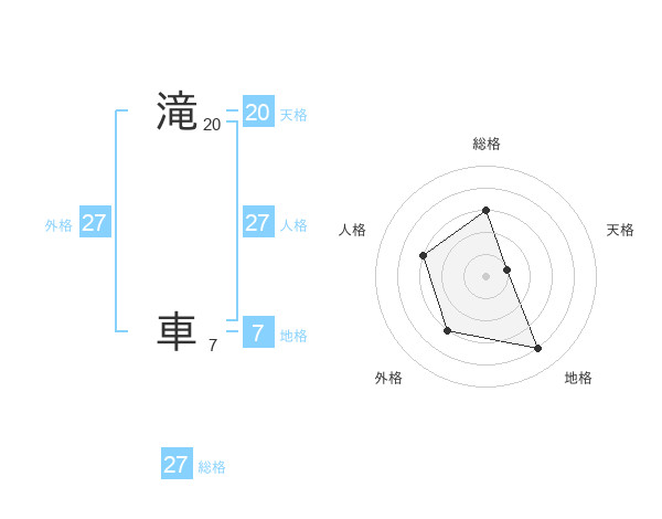 滝 車さんの総格は27画の3点!