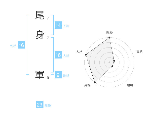 尾身 軍さんの総格は23画の5点!