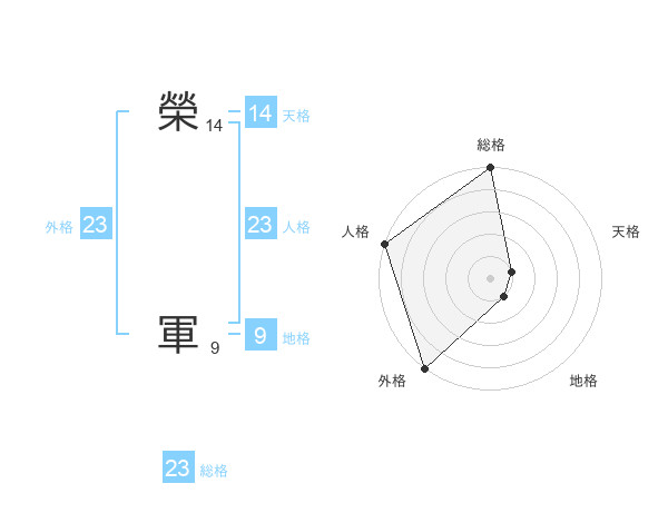 榮 軍さんの総格は23画の5点!