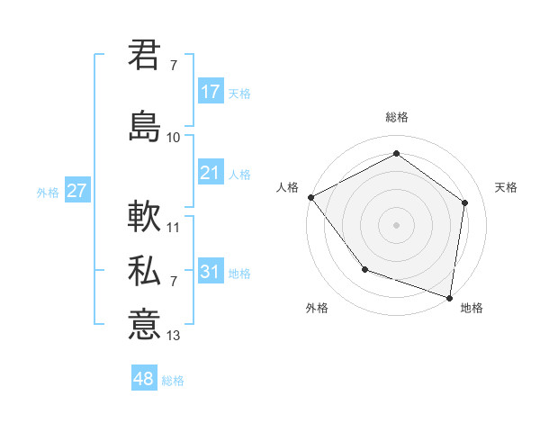 君島 軟私意さんの総格は48画の4点!