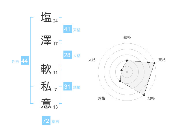 塩澤 軟私意さんを姓名の画数から五運を鑑定