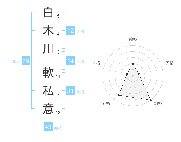 白木川 軟私意さんの総格は43画の2点!