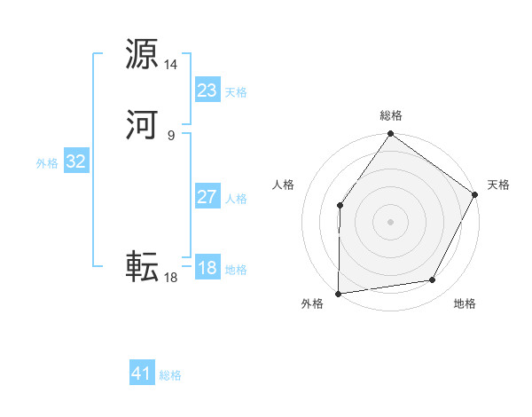 源河 転さんの天格は23画の5点!